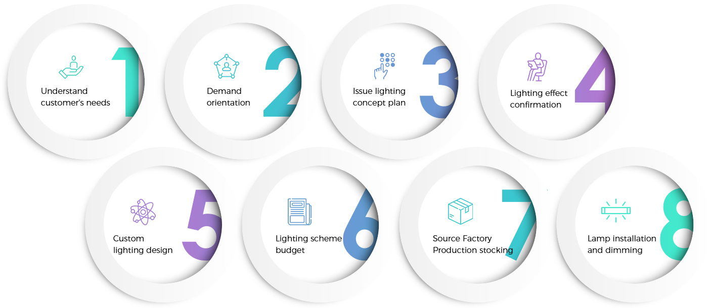 Customize differentiated lighting schemes according to different indoor layouts and decoration styles to create a perfect combination of indoor and outdoor building structure and lighting, a life experience; you can set up the interconnection of smart lighting and smart home according to your living habits,